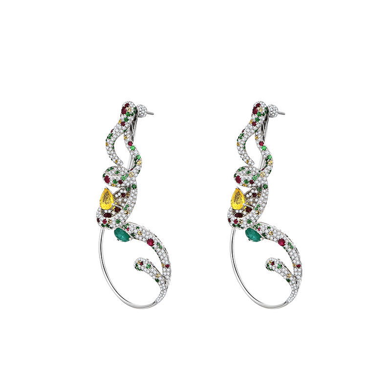 設計線條取材自秦代長城蜿蜒造型,選用當時鋪裝道路的黃繡石、青色與灰色為色調,以黃色剛玉、沙佛萊、紅寶石、祖母綠交織出斑駁色彩,是秦系列中少數的艷麗作品,重約2.05克拉的艷彩祖母綠與傲視蒼穹的歷史相互輝映,留給後世驚艷的想像空間。